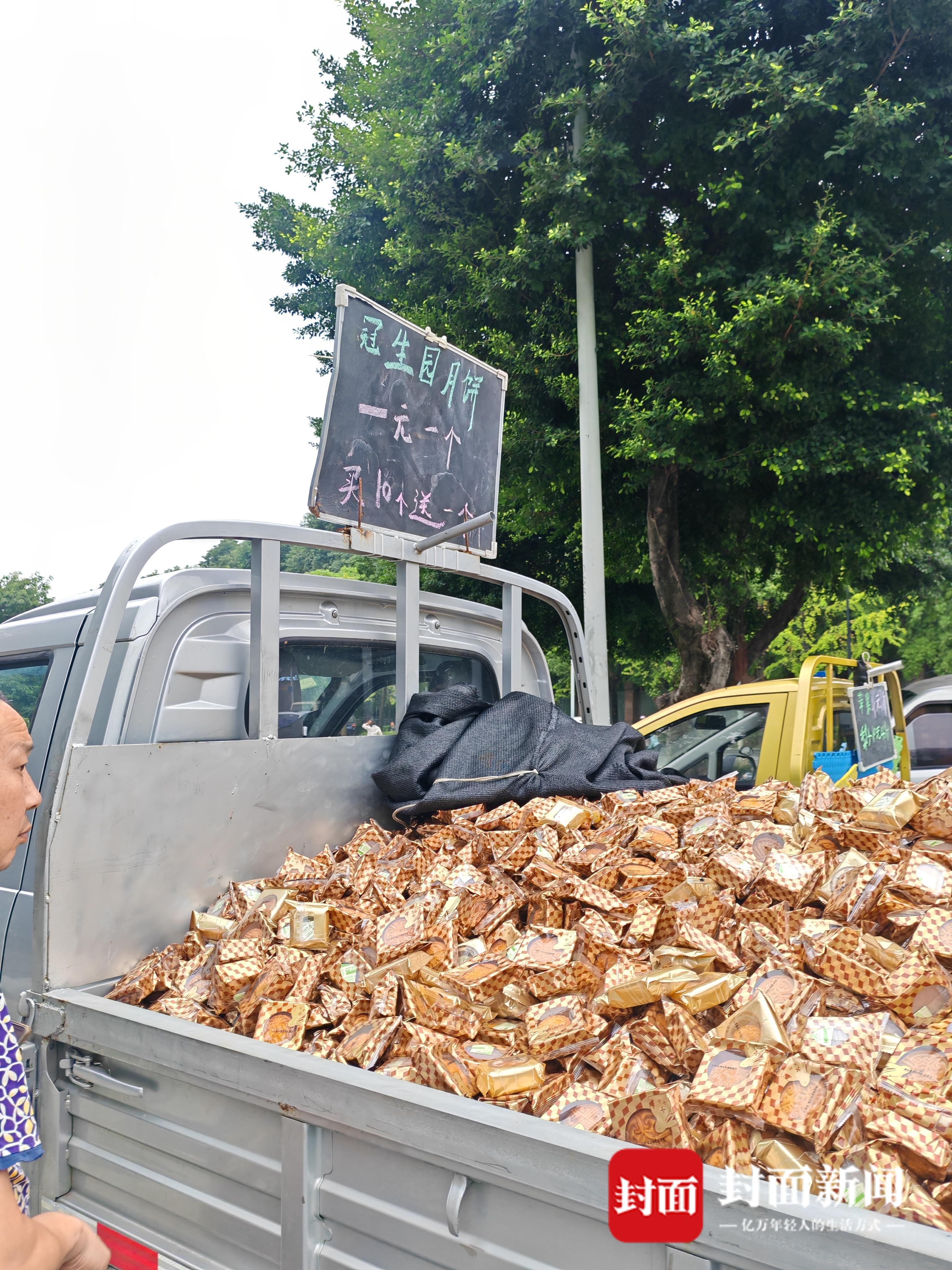 “10元15个,5元买6个,错过等明年哈!”10月15日晚,武侯区三环路内侧,一辆小型货车就地开卖,车斗里堆放着单个包装的月饼。